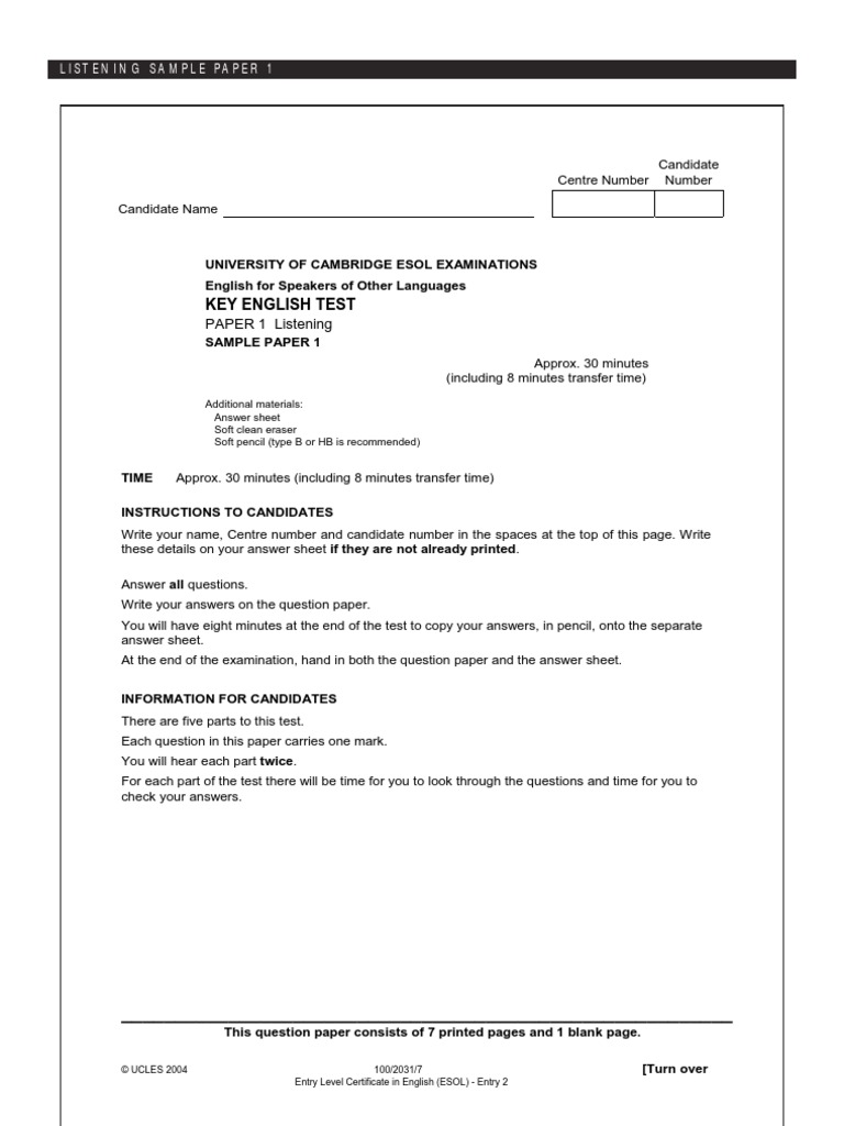 Cambridge English Key 7 Audio CD The past examination papers in Cambridge Key English Test 4 provide the most authentic exam preparation available. Cambridge Ket Exam Sample Papers Author. Reading and Writing Listening and Speaking.